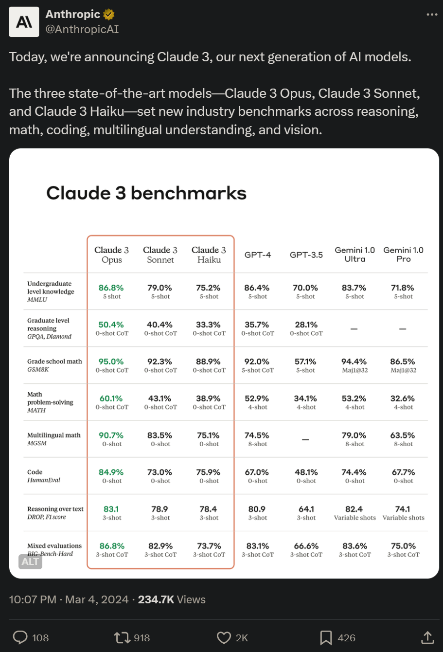 2024년 3월 4일, Anthropic은 최신 AI 모델 Claude 3 패밀리의 출시를 발표했습니다. 이 모델은 Opus, Sonnet, Haiku로 구성되며, 생성 능력에 따라 내림차순으로 나열됩니다. GPT-4와 Gemini 1.0을 능가하는 Claude 3 Opus의 강력함을 활용하는 방법을 알아보세요! 3월 4일, Anthropic은 Claude 3 패밀리를 출시하며 광범위한 인지 작업에서 AI 산업의 새로운 기준이 될 것이라고 밝혔습니다. Claude 3 패밀리는 점점 더 강력해지는 세 가지 AI 모델로 구성되어 있습니다: Claude 3 Haiku, Claude 3 Sonnet, Claude 3 Opus. 클로드 3 API가 새로 출시되면서 프로젝트와 애플리케이션에 이를 구현할 수 있습니다..